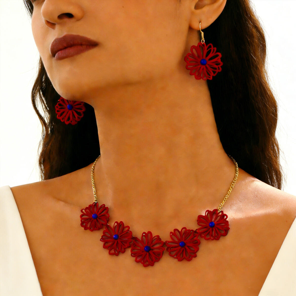 Retro-style Floral Necklace and Earring Set$13.99 USD -