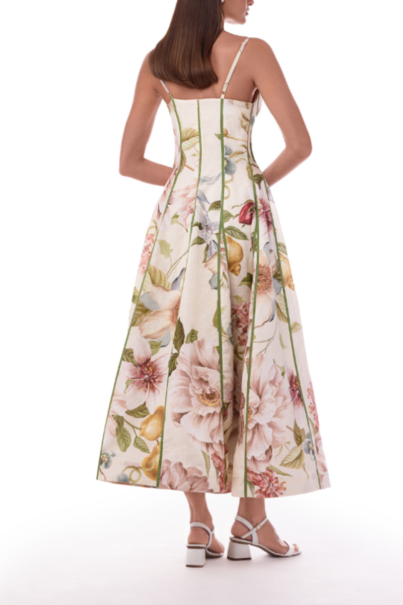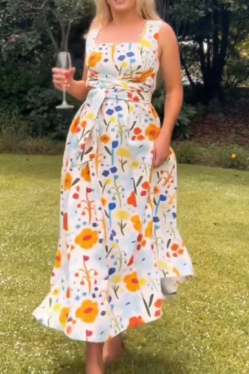 Women's Long Strappy Dress with Floral Print and Webbing Splicing$59.99 USD -