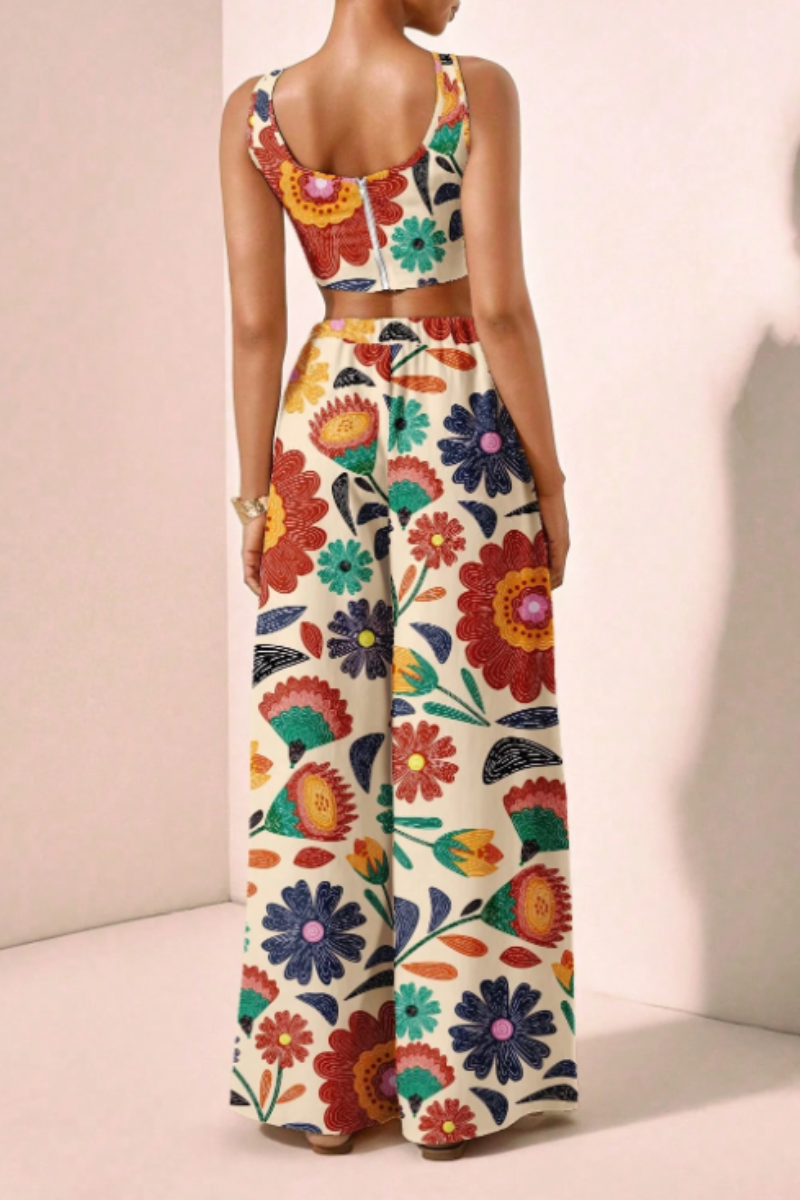 Women V-neck Sleeveless Printed Jumpsuit+ Skirt Bohemian Style Set$49.99 USD -