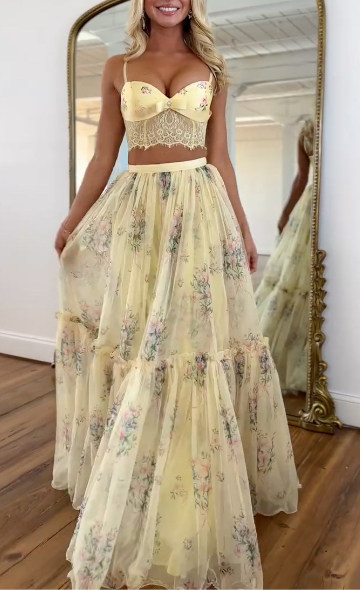 Women Spaghetti Strap Sleeveless Printed Top + Half Skirt Elegant Casual Bohemian Style Set$47.99 USD -