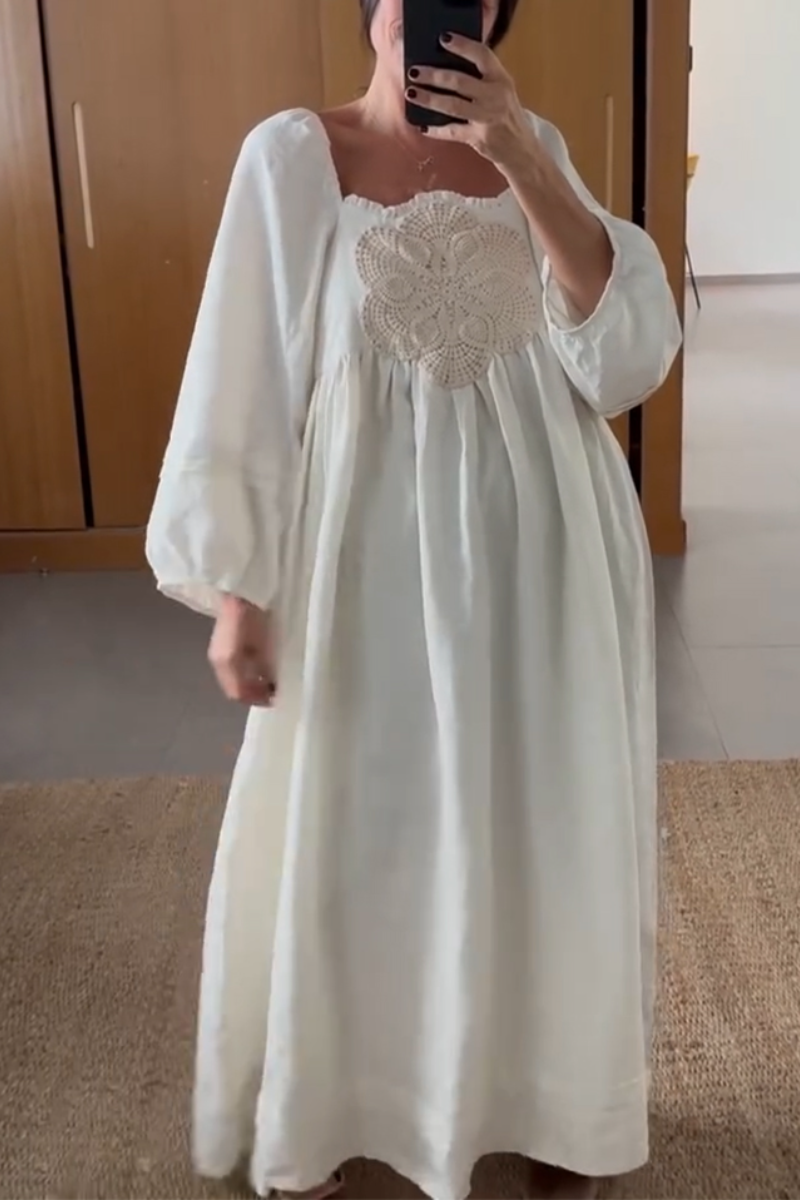 Women Square Neck Long Sleeved Patchwork Crochet Pattern Casual Maxi Dress$59.99 USD -