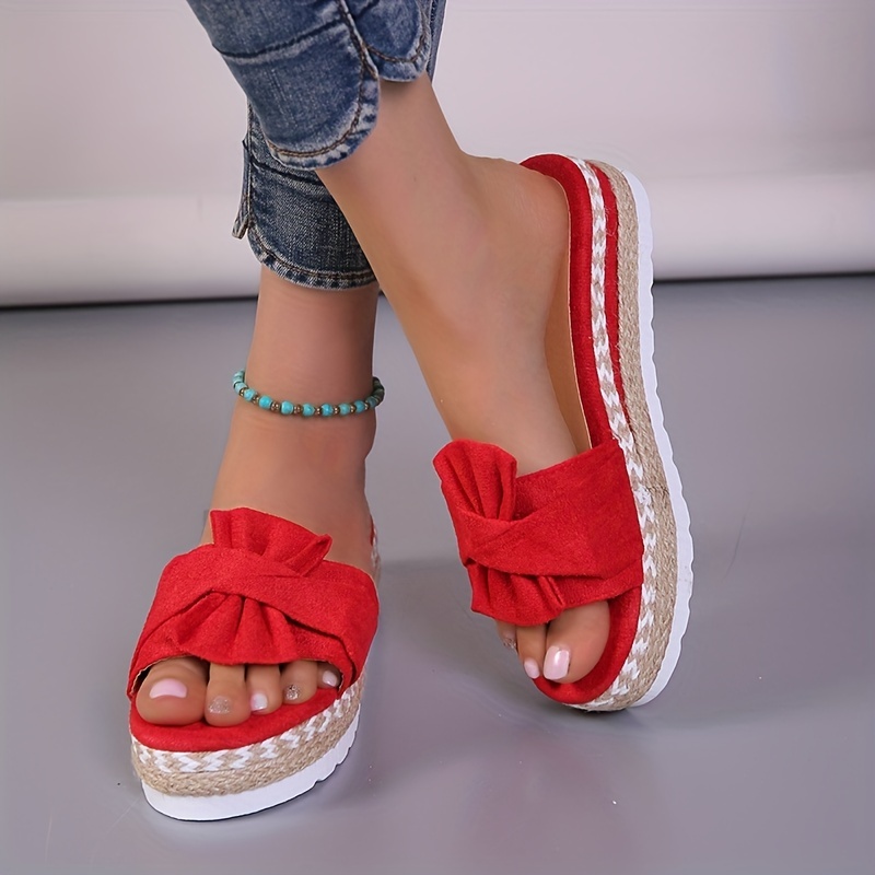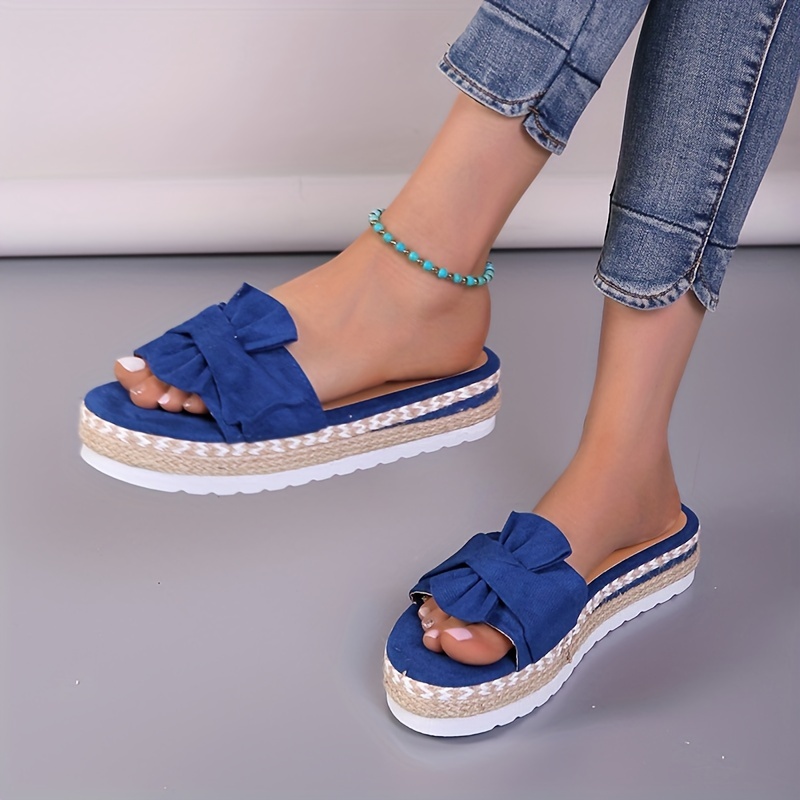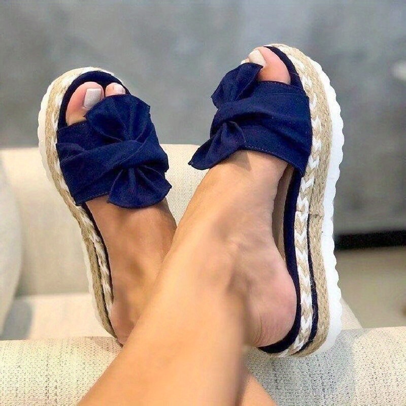 Bowknot Beach Slides 2023 New European and American Bowknot Flat Beach Slides - Thick Sole Wedge Jute Rope Plus Size Women's Shoes - Comfortable Lightweight Women Shoes